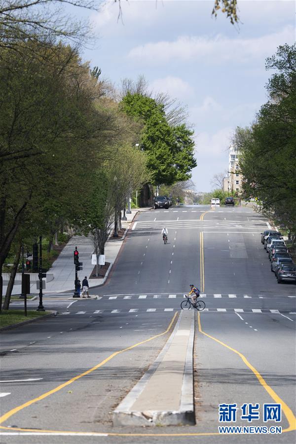 4月8日,在美國(guó)首都華盛頓,市民在空曠的街道上騎行。美國(guó)約翰斯·霍普金斯大學(xué)8日發(fā)布的新冠疫情最新統(tǒng)計(jì)數(shù)據(jù)顯示,美國(guó)確診病例超過(guò)40萬(wàn)例。美國(guó)目前是全球確診病例最多的國(guó)家。數(shù)據(jù)顯示,截至美國(guó)東部時(shí)間8日12時(shí)30分(北京時(shí)間9日0時(shí)30分),美國(guó)新冠確診病例升至401166例,死亡12936例。新華社記者劉杰攝