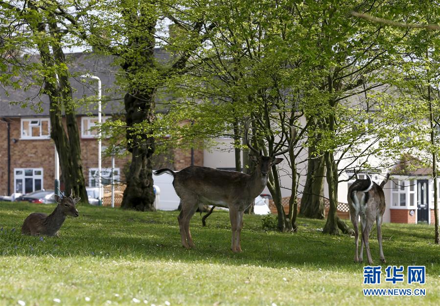 4月8日,在英國倫敦東部一個居民區(qū),附近公園里的鹿在草坪上駐足。隨著新冠疫情在英國的擴(kuò)散,政府要求人們減少不必要的外出。倫敦東部一個居民區(qū)附近公園里原來散養(yǎng)的鹿紛紛從公園走出來,或吃草或接受附近居民的喂食,成為特殊時期居民區(qū)里的新“客人”。新華社記者韓巖攝