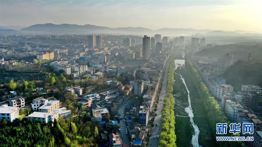 4月13日清晨時(shí)分拍攝的洛南縣城(無人機(jī)照片)。新華社記者陶明攝