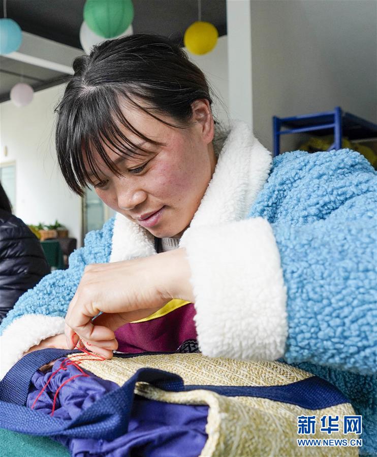 4月8日,在重慶石柱中益鄉(xiāng)巾幗扶貧工坊,當?shù)貗D女在縫制土家族風情手提袋。近年來,重慶市石柱土家族自治縣中益鄉(xiāng)在重慶市婦聯(lián)的幫助下,以當?shù)胤沁z傳統(tǒng)技藝作為結合點,把扶貧與扶志、扶智相結合,通過引進外來文創(chuàng)企業(yè)對留守婦女、貧困及殘疾人群進行刺繡培訓,設立巾幗扶貧工坊等多種形式,幫助當?shù)卮迕駥崿F(xiàn)就業(yè)增收。據(jù)介紹,巾幗扶貧工坊運行以來,為當?shù)仃懤m(xù)開發(fā)出土家族布老虎、手提袋、餐墊繡邊、創(chuàng)意相框等一系列文創(chuàng)產(chǎn)品,幫助參加巾幗扶貧工坊的留守婦女和貧困村民實現(xiàn)月均增收近千元。新華社記者劉潺攝