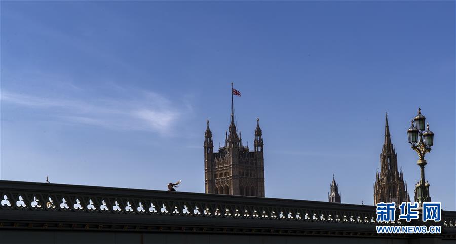 這是4月14日在英國倫敦拍攝的議會大廈前空蕩蕩的威斯敏斯特橋。新華社記者韓巖攝