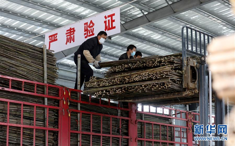 4月24日,在廣西融安縣農(nóng)產(chǎn)品加工暨粵桂扶貧協(xié)作產(chǎn)業(yè)園的一家竹制品外貿(mào)企業(yè),工人在裝載竹制品。日前,廣西柳州市融安縣農(nóng)產(chǎn)品加工暨粵桂扶貧協(xié)作產(chǎn)業(yè)園內(nèi)的企業(yè)已全部復(fù)工復(fù)產(chǎn),園區(qū)竹制品外貿(mào)企業(yè)正在加緊生產(chǎn),在完成外貿(mào)訂單的同時(shí)主動(dòng)對(duì)接國(guó)外市場(chǎng),研發(fā)新的竹制品,提高產(chǎn)品附加值。新華社記者趙曼君攝