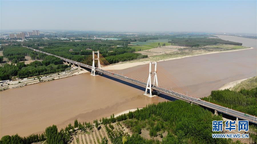 4月24日在山東濟(jì)南拍攝的黃河景色(無(wú)人機(jī)照片)。春暖花開(kāi)的時(shí)節(jié),濟(jì)南黃河兩岸春風(fēng)送綠,大河、綠植與城市構(gòu)成了一幅春的畫卷。新華社記者王凱攝