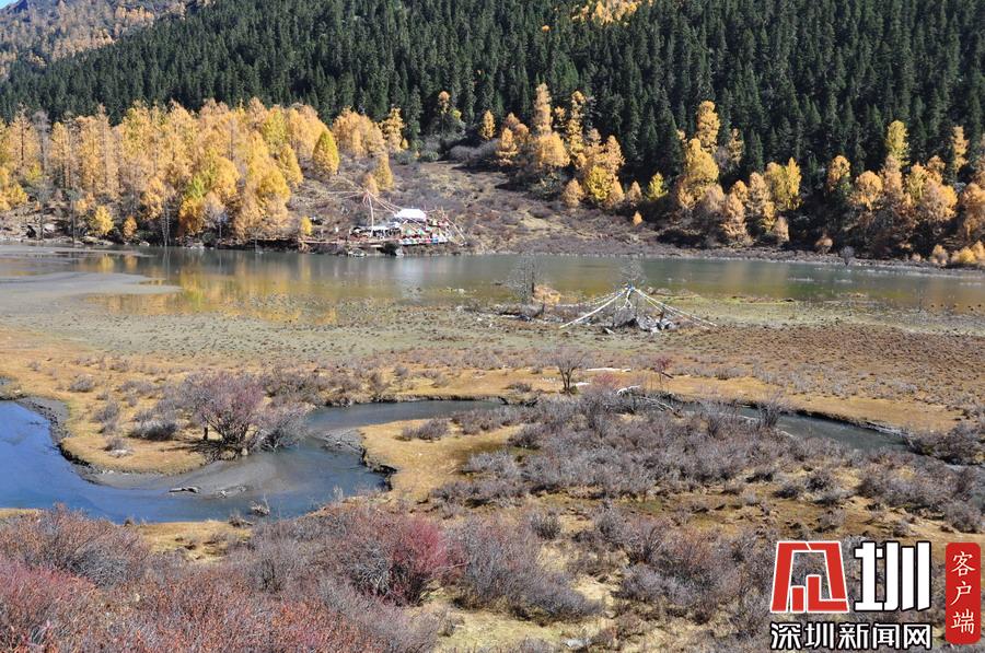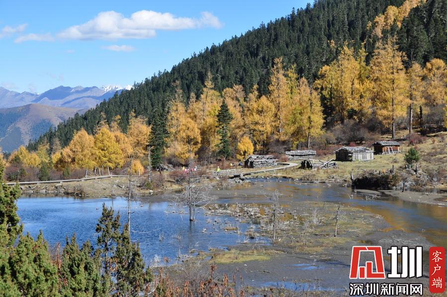 溝里有大片的落葉松、杜鵑和云杉林,雪山、海子、濕地、河流等景觀應(yīng)有盡有,唯獨(dú)沒有公路,只能沿木棧道徒步游覽。李仁奇攝