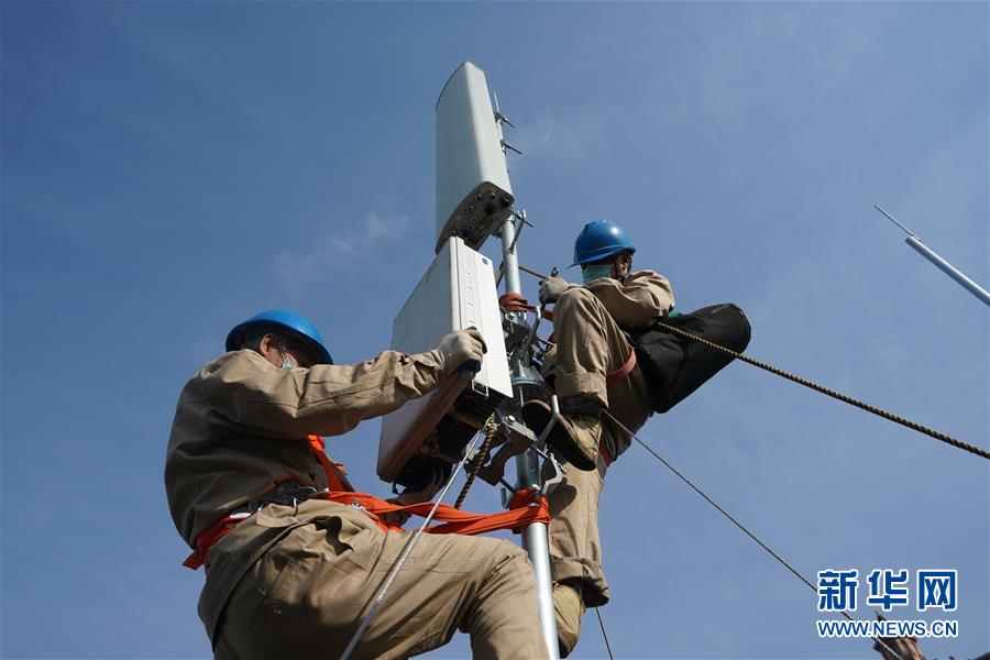 4月25日,在南京220千伏城南河變電站屋頂,工人在架設(shè)5G設(shè)備。當(dāng)日,三大通信運(yùn)營(yíng)商的2座5G、3座4G基站建設(shè)工作在南京220千伏城南河變電站屋頂有序展開(kāi)。在變電站內(nèi)建設(shè)基站可有效利用電網(wǎng)資源,縮短建設(shè)周期,節(jié)約建設(shè)成本。新華社記者季春鵬攝