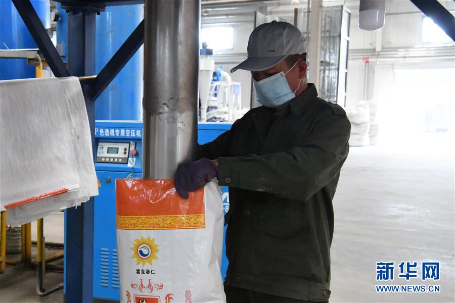 4月26日,中哈霍爾果斯國際邊境合作中心中方配套區(qū)內(nèi)的霍爾果斯霍克葵仁商貿(mào)有限公司生產(chǎn)車間內(nèi),員工將產(chǎn)品裝袋。3月以來,在做好疫情防控的前提下,新疆霍爾果斯“口岸經(jīng)濟”加快復蘇,每天出入其中的商販和游客逐漸增多。與此同時,位于中哈霍爾果斯國際邊境合作中心中方配套區(qū)內(nèi)的各家企業(yè)正抓緊時間生產(chǎn)。新華社記者顧煜攝