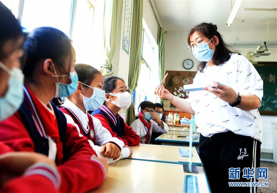 4月30日,諸暨市暨陽小學(xué)五年級(jí)4班班主任宣明霞在主題班會(huì)上向?qū)W生講解家庭用餐使用公筷公勺的重要性。當(dāng)日,浙江省諸暨市暨陽小學(xué)五年級(jí)4班開展“公筷公勺新家風(fēng)”主題班會(huì)活動(dòng),通過海報(bào)設(shè)計(jì)、情景劇表演等強(qiáng)化孩子們使用公筷公勺的意識(shí),倡導(dǎo)文明用餐。新華社記者 韓傳號(hào) 攝