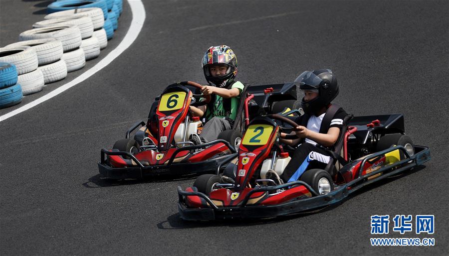 5月2日,游客在遼寧省鞍山市祥和度假莊園里開卡丁車?!拔逡弧奔偃掌陂g,人們以多種方式放松心情、享受假日。新華社記者姚劍鋒攝