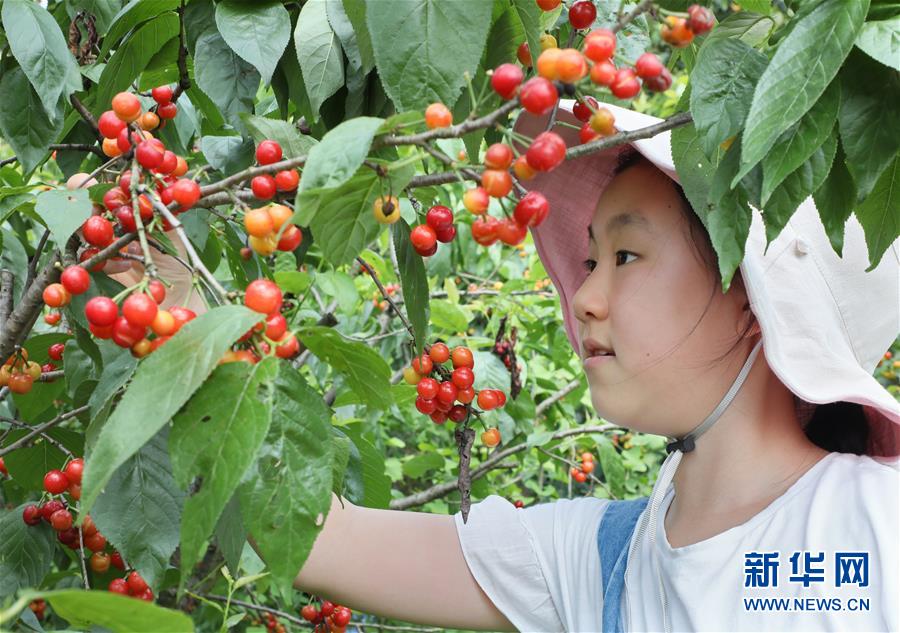 5月2日,一名小游客在江蘇無錫宜興市白塔村櫻桃園采摘櫻桃。“五一”假日期間,人們以多種方式放松心情、享受假日。新華社發(fā)(丁煥新攝)
