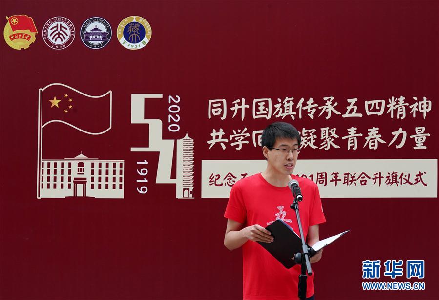 5月4日,北京大學(xué)青年代表在升旗儀式上發(fā)言。 當(dāng)日,北京大學(xué)通過與武漢大學(xué)、西藏大學(xué)、北京大學(xué)研究生支教團聯(lián)合舉辦紀(jì)念五四運動升旗儀式以及北京大學(xué)2020年五四青春詩會等活動,傳承五四精神,紀(jì)念五四青年節(jié)。 新華社記者 張晨霖 攝