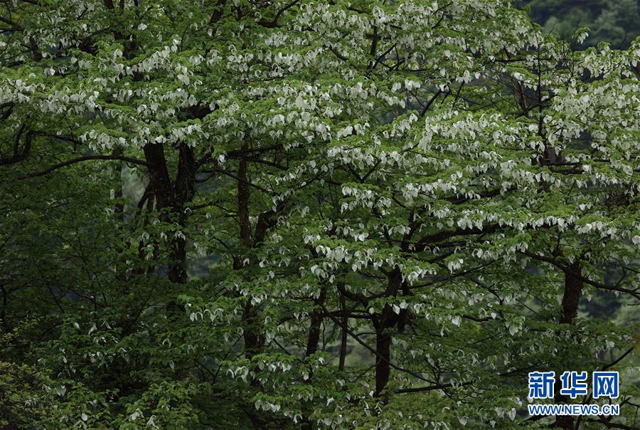 位于四川省滎經(jīng)縣的龍蒼溝國(guó)家森林公園里,鴿子花盛開(5月4日攝)。目前,位于四川省大相嶺山脈東麓北坡的龍蒼溝國(guó)家森林公園里,約8萬(wàn)畝鴿子花盛開,猶如鴿群展翅欲飛。鴿子花即珙桐花,珙桐是珍稀植物,有著植物“大熊貓”“活化石”之稱,是國(guó)家一級(jí)保護(hù)植物,也是著名的觀賞植物。2008年,華中農(nóng)業(yè)大學(xué)、湖北民族學(xué)院和四川省縈經(jīng)縣林業(yè)部門聯(lián)合對(duì)龍蒼溝森林公園的珙桐進(jìn)行了種群生態(tài)學(xué)調(diào)查,發(fā)現(xiàn)珙桐在這里共分布約8萬(wàn)畝,集中成片分布近4萬(wàn)畝。珙桐面積之大、株數(shù)之多、密度之高,十分罕見。新華社記者 江宏景 攝