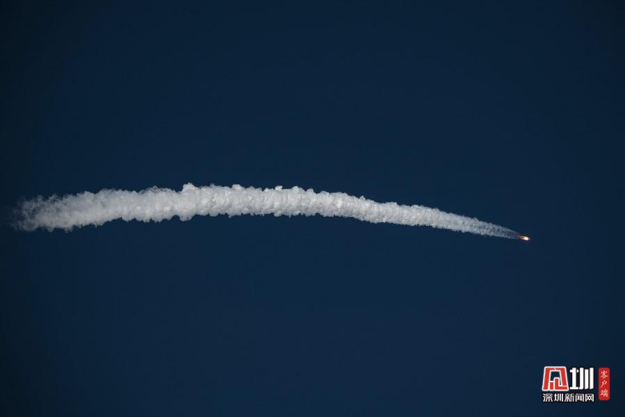 2020年5月5日18時,長征五號B運載火箭在文昌發(fā)射場點火升空,這是在第一次程序轉(zhuǎn)彎后正常飛行。