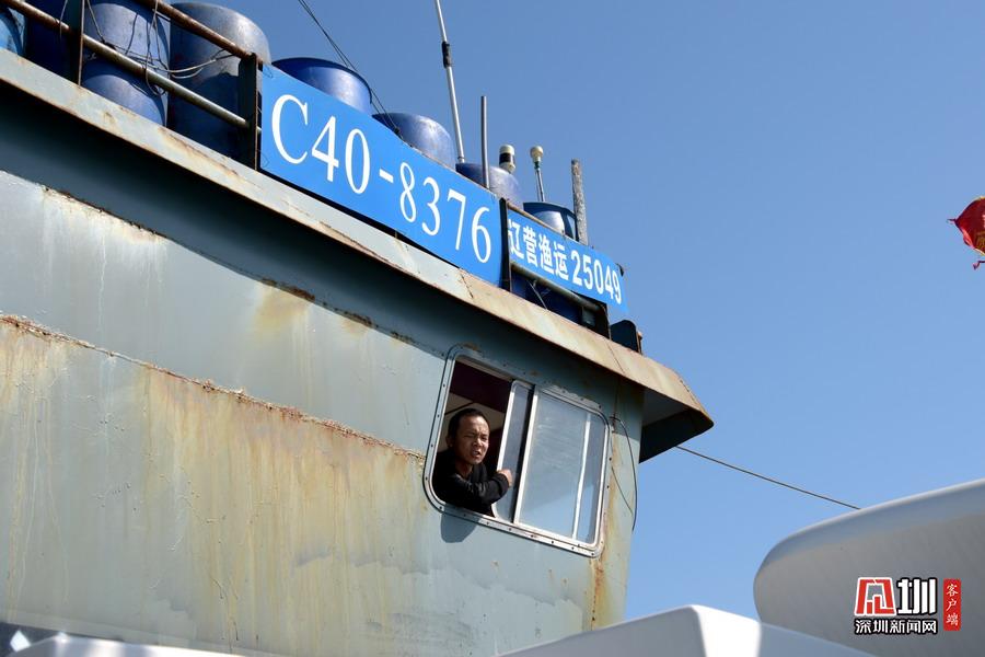 2020年5月6日,山東省榮成市石島管理區(qū)石島灣海域,榮成市漁政部門執(zhí)法人員對一運(yùn)輸船進(jìn)行檢查。