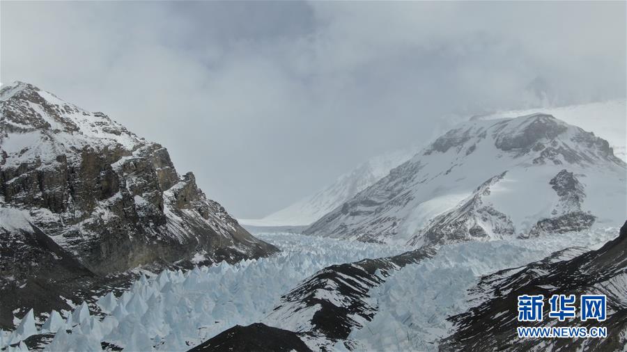 過渡營地附近的冰塔林(5月8日攝,無人機(jī)照片)。珠峰過渡營地海拔5800米,是連接前進(jìn)營地和珠峰大本營的重要一站。登山愛好者從大本營徒步大約四個(gè)小時(shí)就能抵達(dá)過渡營地。此段路程亂石林立,同時(shí)也能欣賞壯美的冰川。新華社記者孫非攝