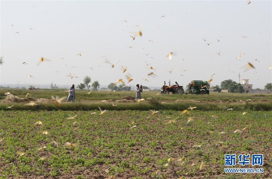 5月9日,在巴基斯坦旁遮普省杰格瓦爾地區(qū),當(dāng)?shù)鼐用裨谔锏乩锱臄z蝗蟲。據(jù)巴基斯坦媒體報(bào)道,該國旁遮普省和信德省一些地區(qū)近期再次遭遇沙漠蝗蟲侵襲,當(dāng)?shù)卣呀M織民眾進(jìn)行緊急消殺。新華社記者 劉天 攝