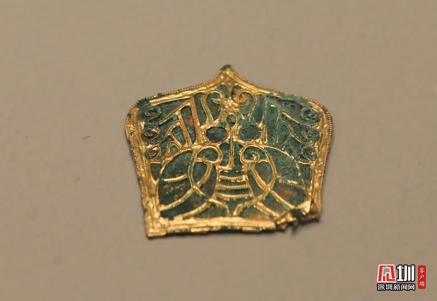 2020年5月10日報道,近十年來最大規(guī)模三國文物展“三國志——文化主題特展”,正在中華世紀(jì)壇展出。圖為西晉,蟬紋金珰。