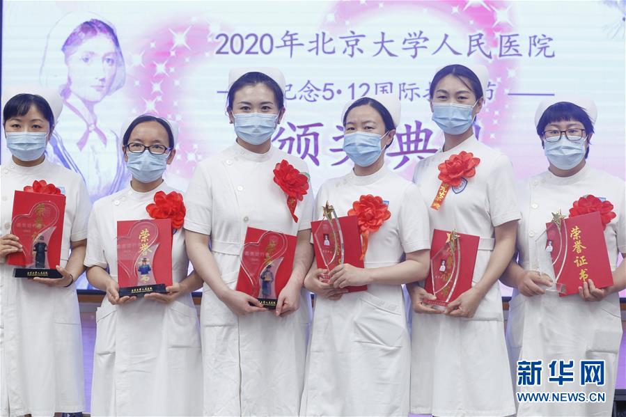 5月11日,獲獎(jiǎng)護(hù)士在護(hù)士節(jié)活動(dòng)上合影。在國(guó)際護(hù)士節(jié)到來(lái)之際,北京大學(xué)人民醫(yī)院11日舉辦慶祝護(hù)士節(jié)暨優(yōu)秀集體和個(gè)人表彰活動(dòng),并邀請(qǐng)?jiān)踽t(yī)療隊(duì)護(hù)士代表分享戰(zhàn)“疫”故事。我國(guó)今年護(hù)士節(jié)的主題為“致敬護(hù)士隊(duì)伍,攜手戰(zhàn)勝疫情”。新華社記者張玉薇攝