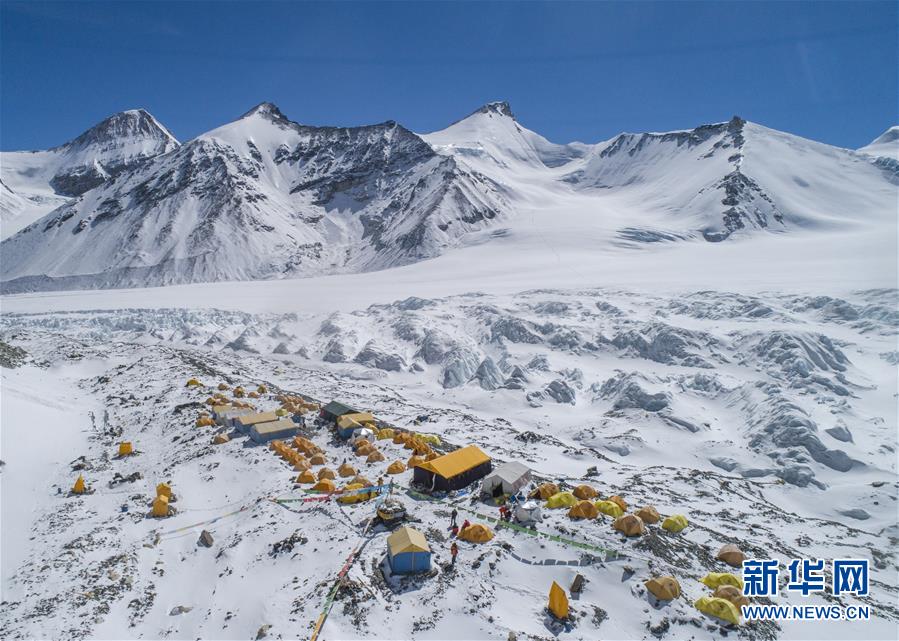 這是海拔6500米的珠峰前進(jìn)營地(5月10日無人機(jī)照片)。