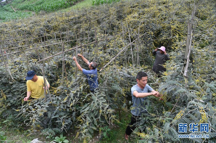 5月13日,在廣西環(huán)江毛南族自治縣下南鄉(xiāng)下塘村,村民在管護(hù)中草藥。新華社記者陸波岸攝