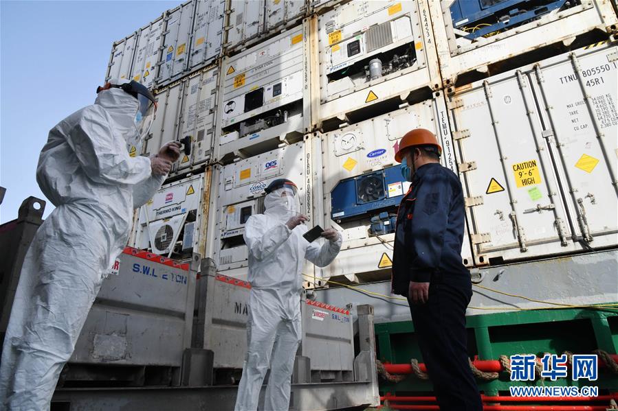 5月13日,山東威海出入境邊防檢查站民警在核對外籍船員證件。面對疫情防控要求,山東威海出入境邊防檢查站嚴(yán)密勤務(wù)組織、強化數(shù)據(jù)研判,加強口岸、碼頭的日常巡查,對國際船舶和船員強化監(jiān)管,全力打好疫情防輸入攻堅戰(zhàn)。據(jù)統(tǒng)計,自2月份以來,威海邊檢站共服務(wù)出入境(港)船舶400余艘次,出入境(港)人員7000多人次,為180多個集裝箱防疫物資提供通關(guān)便利。新華社記者朱崢攝
