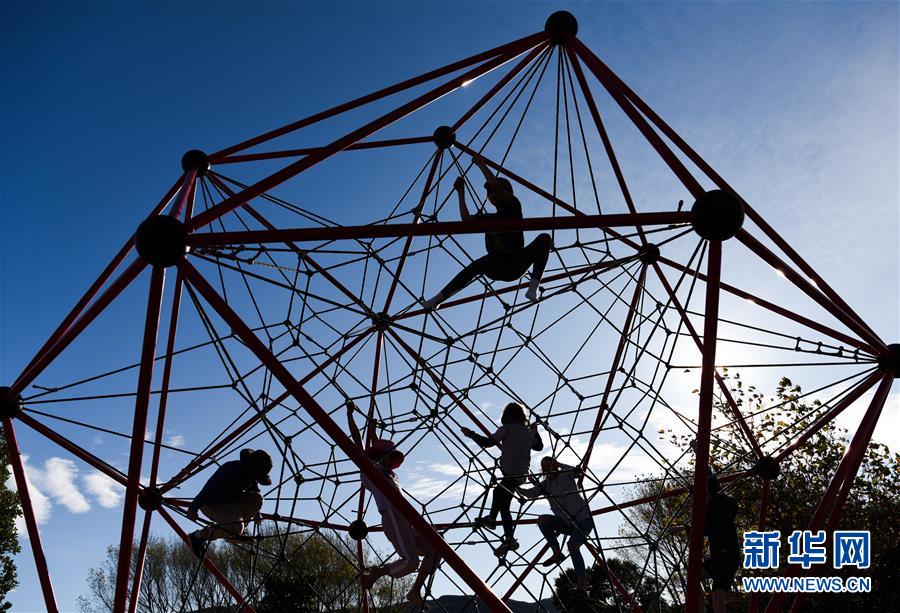 5月14日,孩子們在首都惠靈頓郊外公園的游樂場玩耍。當天是新西蘭從新冠疫情防控響應三級下調到二級的第一天,經(jīng)濟活動全面重啟,公園等公共設施首次重新開放,中小學生將于5月18日全面返校復課。新華社記者郭磊攝