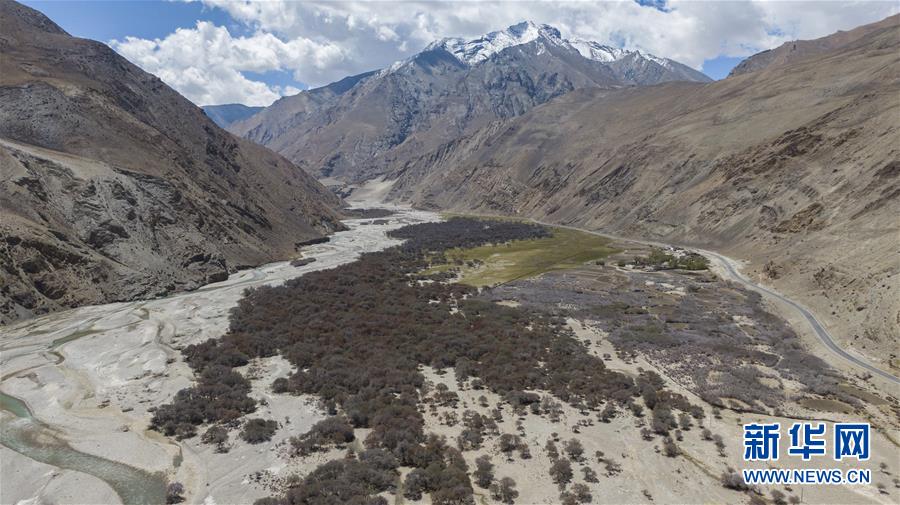 內(nèi)的沙棘林(5月16日攝,無(wú)人機(jī)照片)。新華社記者孫非攝