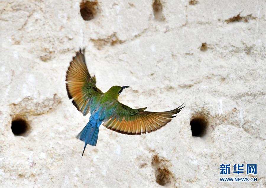 這是5月19日在廈門(mén)五緣灣栗喉蜂虎自然保護(hù)區(qū)拍攝的栗喉蜂虎。近日,大批栗喉蜂虎來(lái)到廈門(mén)五緣灣栗喉蜂虎自然保護(hù)區(qū)棲息、繁殖。新華社記者魏培全攝