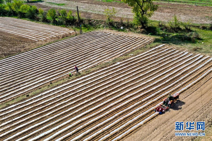 宋家溝村村民在種谷子(5月19日攝,無(wú)人機(jī)照片)。新華社記者曹陽(yáng)攝