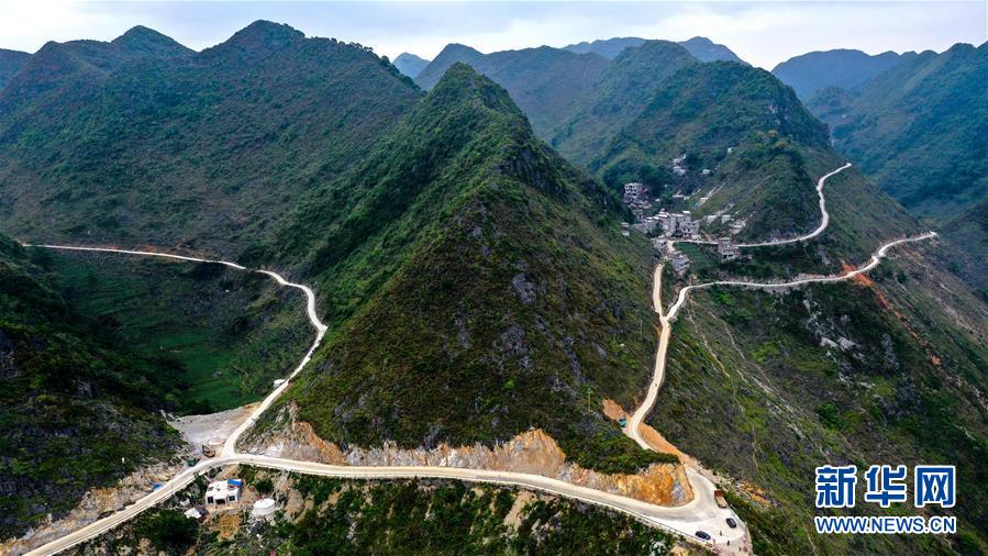 這是大化瑤族自治縣七百弄鄉(xiāng)天上人間景點(diǎn)附近的盤山公路(5月13日攝,無(wú)人機(jī)照片)。新華社記者曹祎銘攝