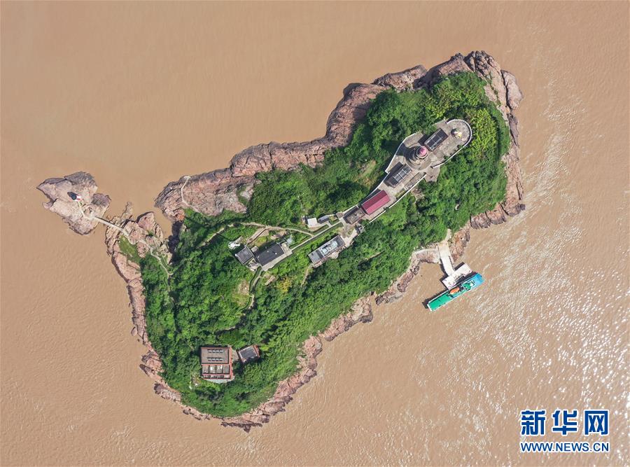 5月20日,補給船在浙江寧波七里嶼碼頭靠岸(無人機照片)。補給船每周送一次生活物資。新華社記者翁忻旸攝