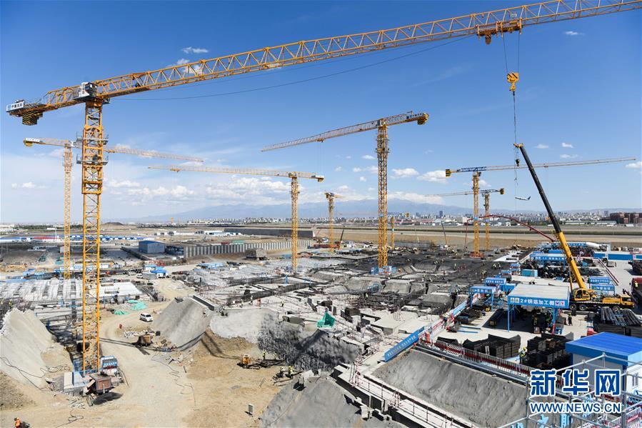 5月23日,工人在烏魯木齊機(jī)場(chǎng)改擴(kuò)建工程施工現(xiàn)場(chǎng)作業(yè)。新華社記者丁磊攝
