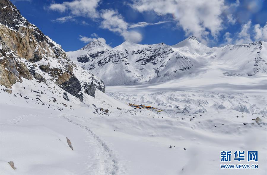 被大雪覆蓋的海拔6500米的珠峰前進營地(5月22日攝)。新華社記者晉美多吉攝
