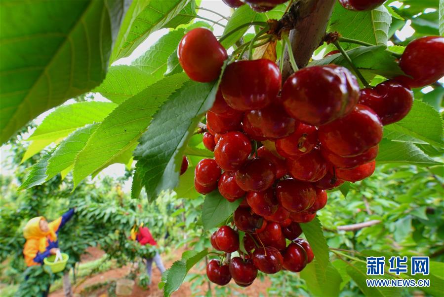 5月24日在灤州市九百戶鎮(zhèn)雞冠山生態(tài)產業(yè)園拍攝的大櫻桃。新華社記者楊世堯攝