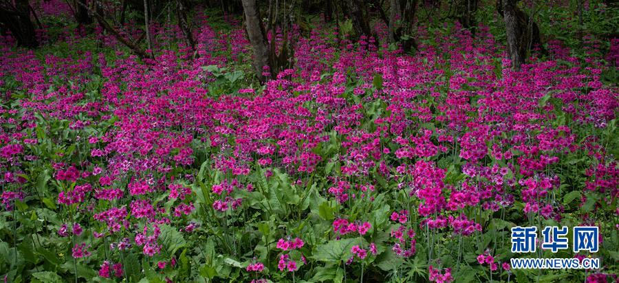 四川省漢源縣桌子山上的報春花遍地綻放(5月24日攝)。新華社記者江宏景攝