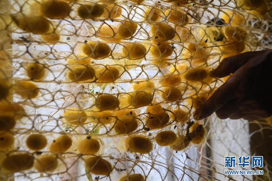 養(yǎng)殖的黃金蠶在吐絲結(jié)繭(5月27日攝)。新華社記者徐昱攝