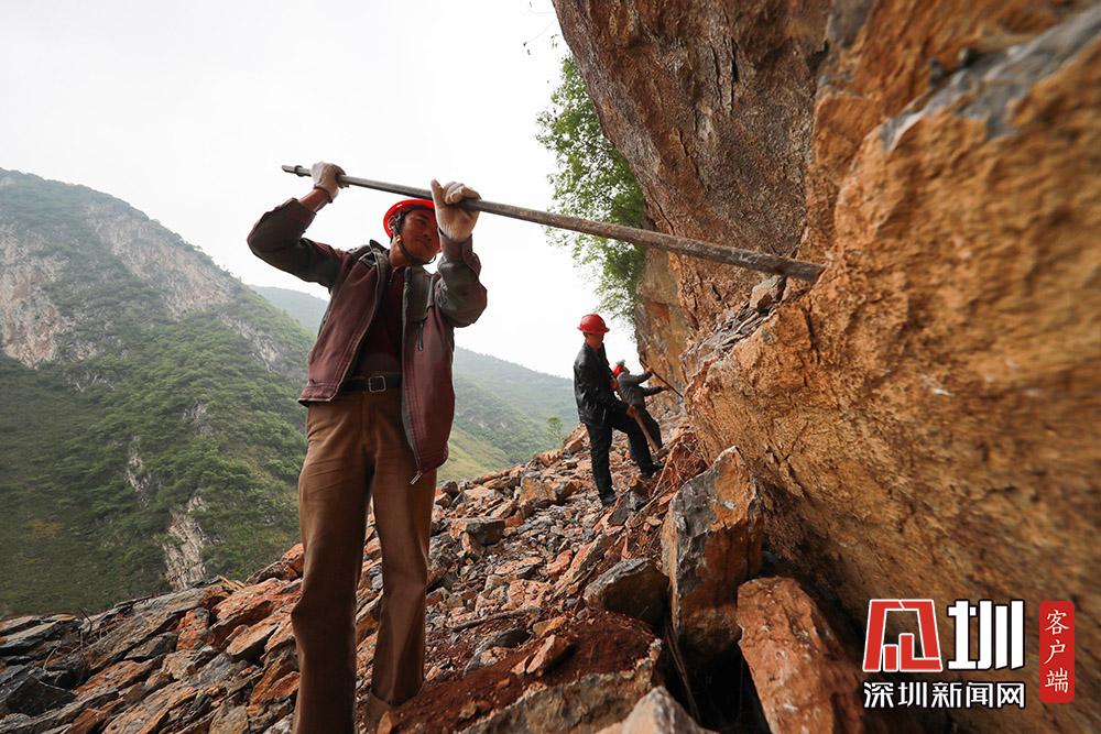 2020年5月27日,在貴州省畢節(jié)市納雍縣化作鄉(xiāng)雙巖頭村,村民義務(wù)參加修路。