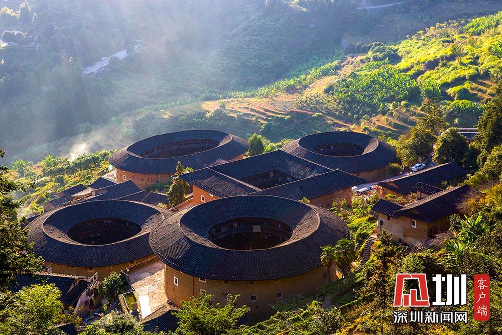 2017年11月1日,實拍福建南靖土樓令人嘆為觀止。不能吃的“四菜一湯”,它就是著名的田螺坑土樓群,它由步云樓、振昌樓、瑞云樓、和昌樓和文昌樓組成,建于海拔700多米的半坡上。