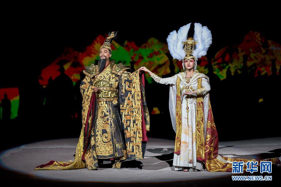 5月28日,演員在大型實(shí)景神話音樂劇《昆侖之約》中表演。5月28日,新疆文化旅游新名片——大型實(shí)景神話音樂劇《昆侖之約》在烏魯木齊南山景區(qū)上演。該劇融自然山水之美、藝術(shù)文化之光、現(xiàn)代科技之新于一體,為市民獻(xiàn)上一場視聽盛宴。新華社記者丁磊攝