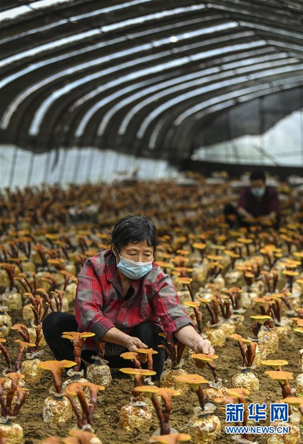 5月30日,在山東省棗莊市嶧城區(qū)峨山鎮(zhèn)食用菌培植扶貧基地,工人在進(jìn)行靈芝種植管理。為了幫助貧困戶穩(wěn)定脫貧,山東省棗莊市嶧城區(qū)峨山鎮(zhèn)采取“公司+基地+農(nóng)戶”的經(jīng)營模式,建立食用菌培植扶貧基地,發(fā)展食用菌種植產(chǎn)業(yè),惠及160余名貧困戶。目前,基地已集菌種試驗(yàn)、培育、生產(chǎn)、銷售于一體,年銷售菌棒500多萬袋,生產(chǎn)各類鮮菇1200余噸。新華社記者 范長國 攝