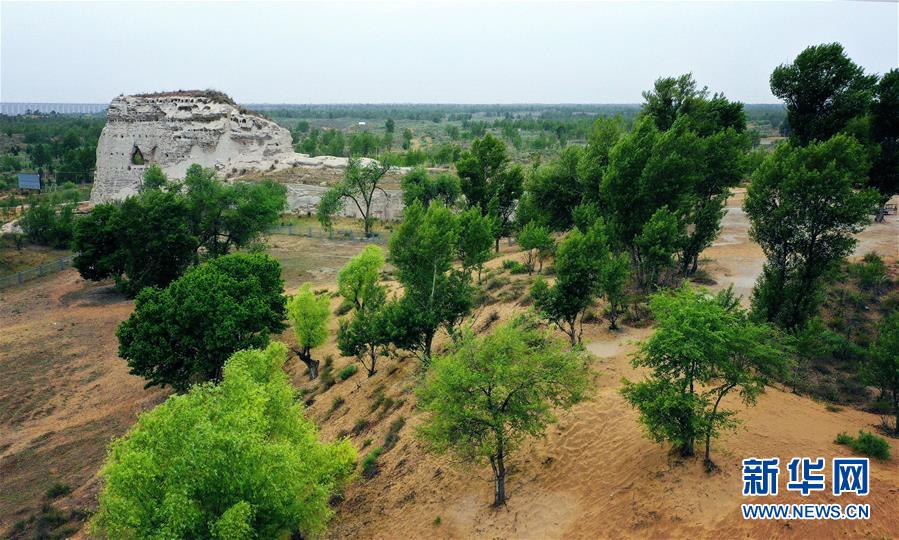 統(tǒng)萬城北接浩瀚的毛烏素沙漠,千余年來,隨著惡劣生態(tài)環(huán)境的影響,曾經(jīng)的城池遺存遭到風雨流沙侵蝕,一度掩埋于沙漠之下。如今,隨著當?shù)貛状舜罅χ紊常鷳B(tài)環(huán)境得以明顯改善,統(tǒng)萬城遺址也隨之變成綠意盎然的“大漠名勝”。