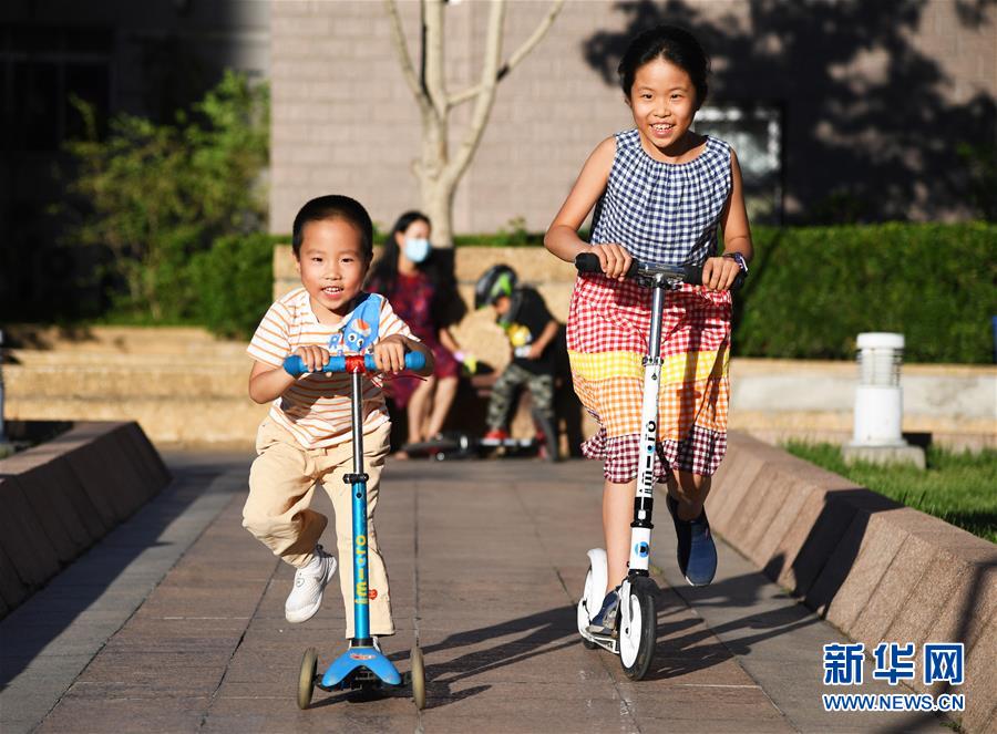 5月31日,在北京市海淀區(qū)中關(guān)村街道新科祥園社區(qū)廣場(chǎng),小朋友在玩耍。新華社記者任超攝