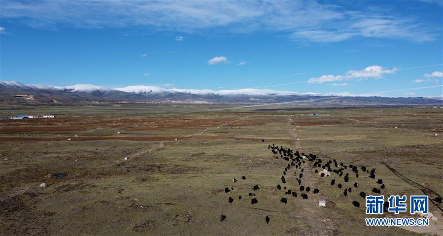 這是5月29日在四川省甘孜藏族自治州理塘縣奔戈鄉(xiāng)卡灰村拍攝的集體農(nóng)場(chǎng)(無(wú)人機(jī)照片)。四川省甘孜藏族自治州理塘縣地處青藏高原東部,縣城海拔約4000米,有“天空之城”的美譽(yù)。時(shí)值初夏,理塘的天空碧藍(lán)如洗,巍峨的雪山環(huán)繞四周,牦牛星星點(diǎn)點(diǎn)散落于曠野之上,構(gòu)成一幅高原特有的壯美圖景。新華社記者李夢(mèng)馨攝