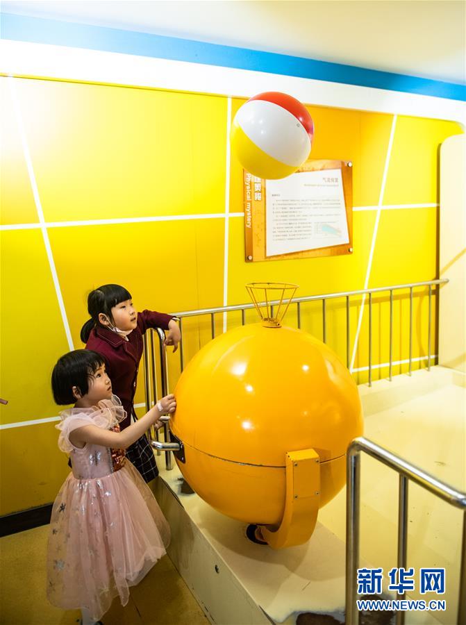 6月1日,小朋友在貴州科技館內(nèi)體驗(yàn)氣流投籃。新華社記者陶亮攝。