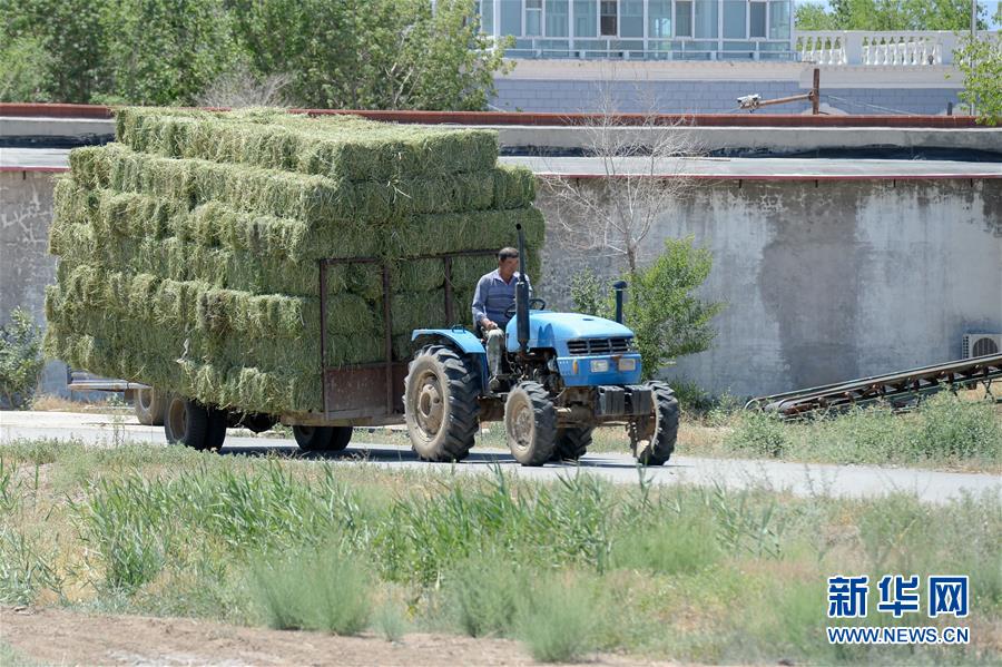 6月2日,在新疆野馬繁殖研究中心,工作人員在運(yùn)送草料。新華社記者丁磊攝。