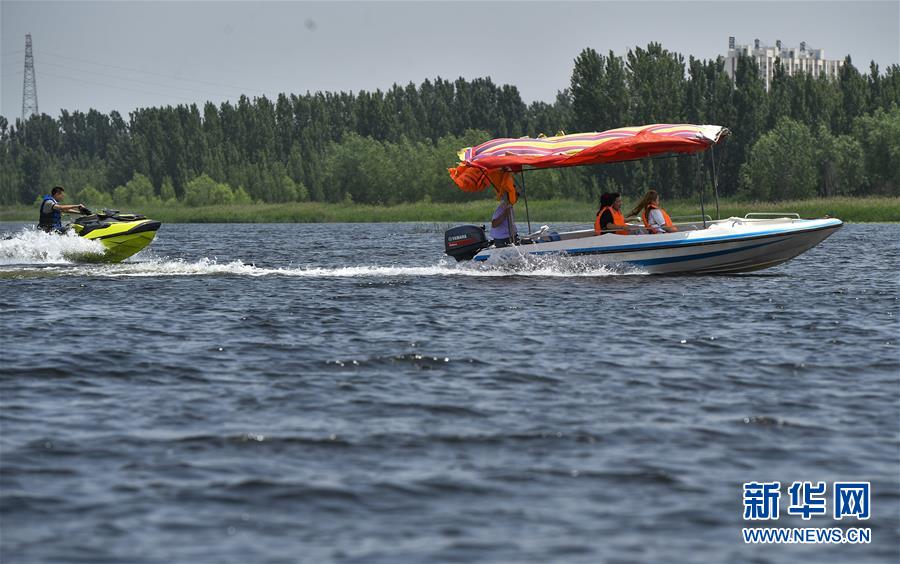 6月5日,游客在文安縣趙王新河濕地公園游覽。近年來,河北省文安縣將植樹造林與城市建設(shè)有機(jī)融合,探索“政府引導(dǎo)、企業(yè)運(yùn)作、多方共贏”的市場化植樹造林新模式,大規(guī)模推進(jìn)國土綠化,打造人與自然和諧共生的優(yōu)美生態(tài)環(huán)境,構(gòu)筑京津雄綠色屏障。截至目前,該縣森林覆蓋率已經(jīng)達(dá)到33%,城區(qū)綠地面積達(dá)到36.48%。新華社記者李曉果攝。