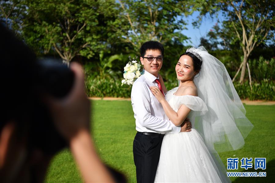 6月6日,新人在海南博鰲樂城國際醫(yī)療旅游先行區(qū)參加集體婚禮。  新華社記者 張玉薇 攝