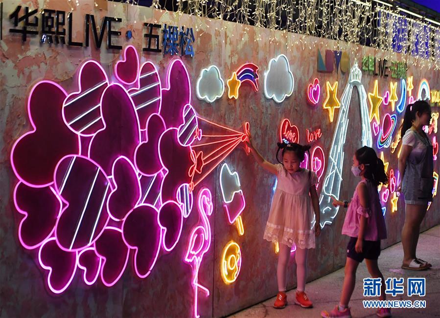 6月6日,小朋友在北京五棵松華熙Live游玩。6月6日晚,北京79個地標(biāo)、商圈、特色街區(qū)同時點亮夜京城,營造消費氛圍,北京“夜經(jīng)濟”也加速回暖。新華社記者張晨霖攝