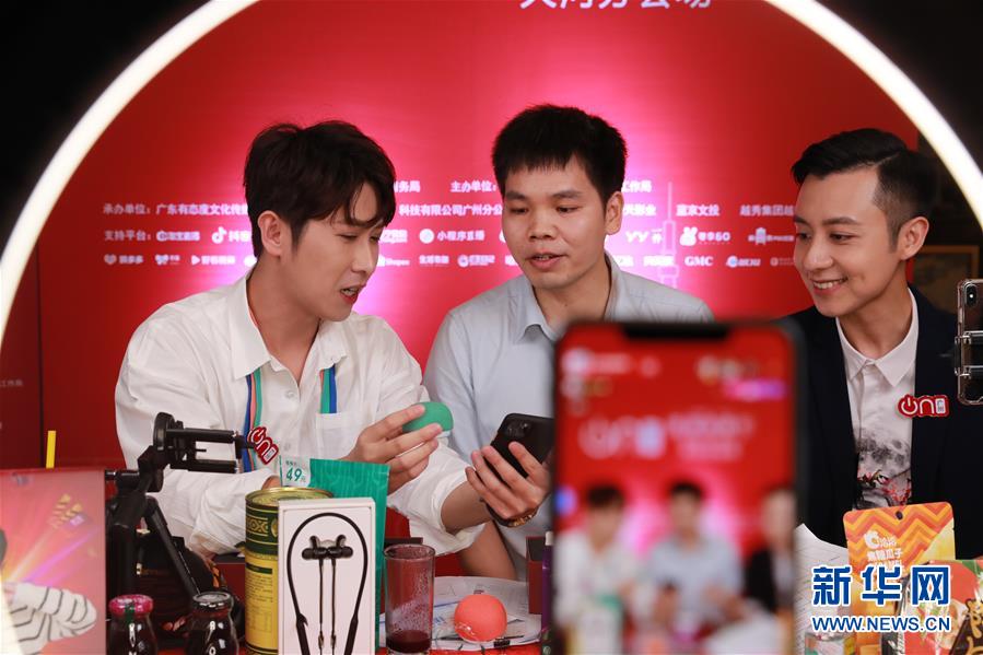 6月6日,主播在廣州市白云區(qū)臺(tái)商分會(huì)場(chǎng)直播帶貨。新華社記者盧燁攝