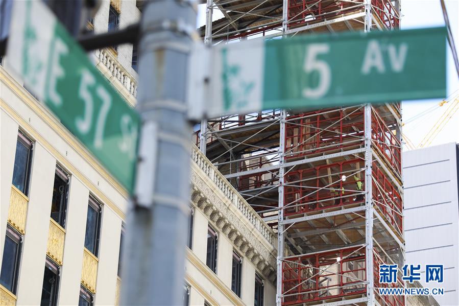 6月8日,工人在美國紐約的一處工地忙碌。在因新冠疫情進入“居家令”近三個月之后,美國紐約市于當?shù)貢r間8日開始“解封”,進入經(jīng)濟重啟的第一階段。新華社記者王迎攝