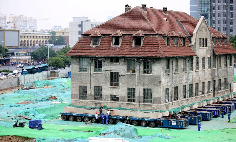 山東濟南2600噸百年修女樓坐“車”準備平移